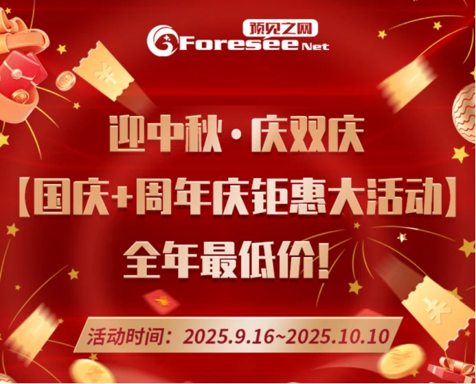 当金桂的芬芳萦绕中秋的圆月,当鲜艳的国旗扬起国庆的欢腾,预见之网也迎来了意义非凡的十二周年庆典。三喜相逢,温暖交织,我们怀揣十二载的感恩与初心,特别呈献『九重豪礼』感恩回馈——限时折扣、惊喜礼券等多重好礼已就位,诚邀您共赴这场秋日的盛宴!